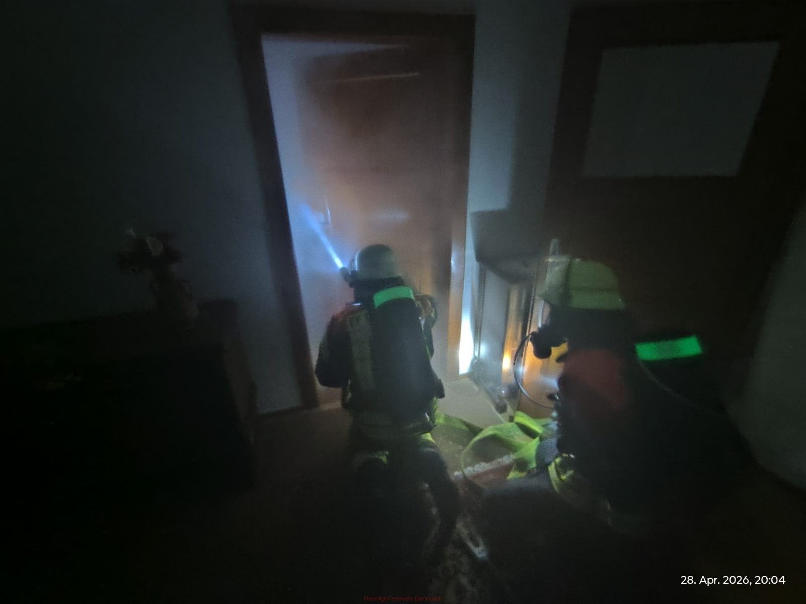 Unverzüglich wurden zwei Trupps unter umluftunabhängigem Atemschutz zur Menschenrettung eingesetzt. Diese gingen mit der gebotenen Eigensicherung und nach den geltenden Feuerwehr-Dienstvorschriften in das Gebäude vor. Die Trupps arbeiteten die Räumlichkeiten systematisch ab und führten eine strukturierte Personensuche unter erschwerten Sichtbedingungen durch.