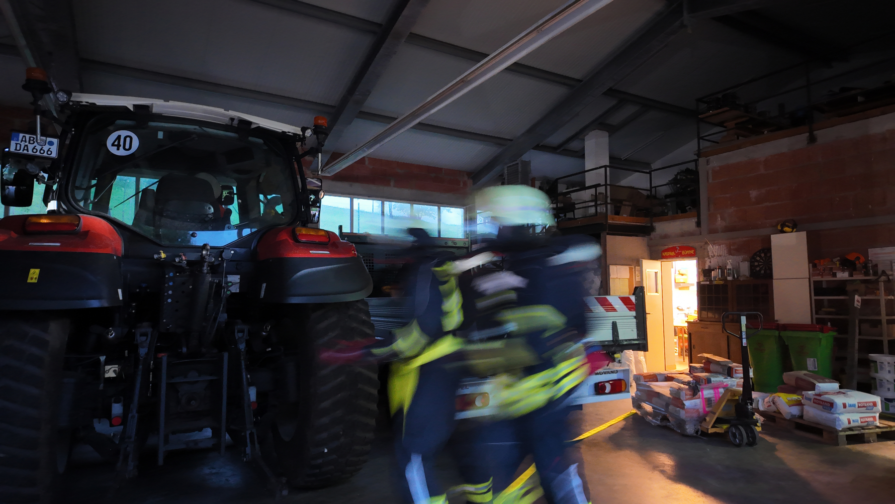 Nach der Begrüßung durch unseren Kommandanten Benjamin fuhren wir zum Gemeindebauhof. Dort wurde eine vermisste Person angenommen. Bei der Übung wurde nach der ersten Erkundung der Angriffstrupp zur Personensuche ins Gebäude geschickt. Gleichzeitig wurde im Außenbereich eine Wasserversorgung aufgebaut.