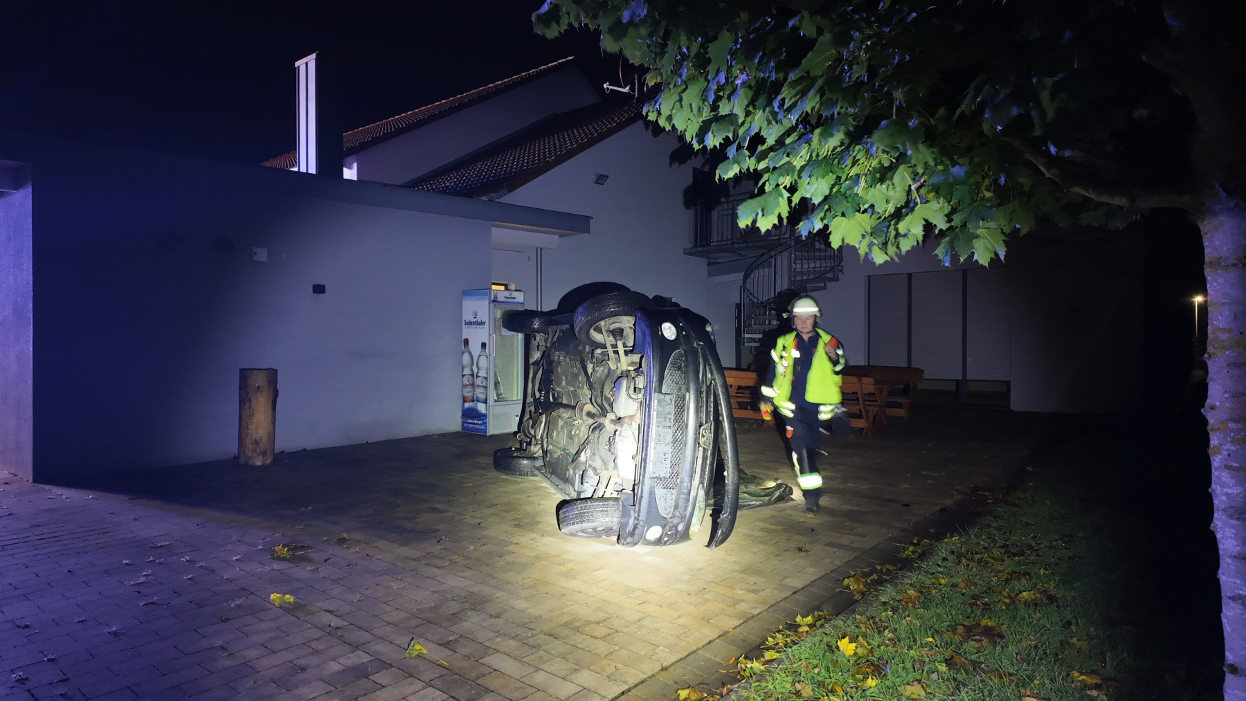 Nach der Begrüßung und Einteilung der Mannschaften fuhren wir auf die Rückseite unseres Feuerwehrhauses wo wir ein Verkehrsunfall 2 eingeklemmten Personen vorfanden. Das Fahrzeug lag auf der Fahrerseite und qualmte.