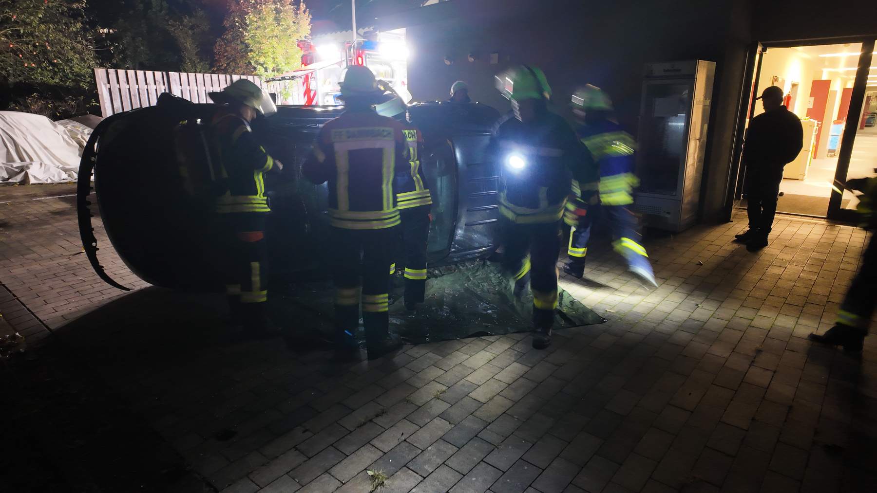 Nach der Begrüßung und Einteilung der Mannschaften fuhren wir auf die Rückseite unseres Feuerwehrhauses wo wir ein Verkehrsunfall 2 eingeklemmten Personen vorfanden. Das Fahrzeug lag auf der Fahrerseite und qualmte.