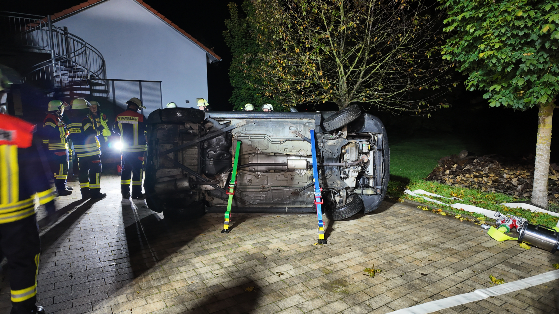 Nach der Begrüßung und Einteilung der Mannschaften fuhren wir auf die Rückseite unseres Feuerwehrhauses wo wir ein Verkehrsunfall 2 eingeklemmten Personen vorfanden. Das Fahrzeug lag auf der Fahrerseite und qualmte.