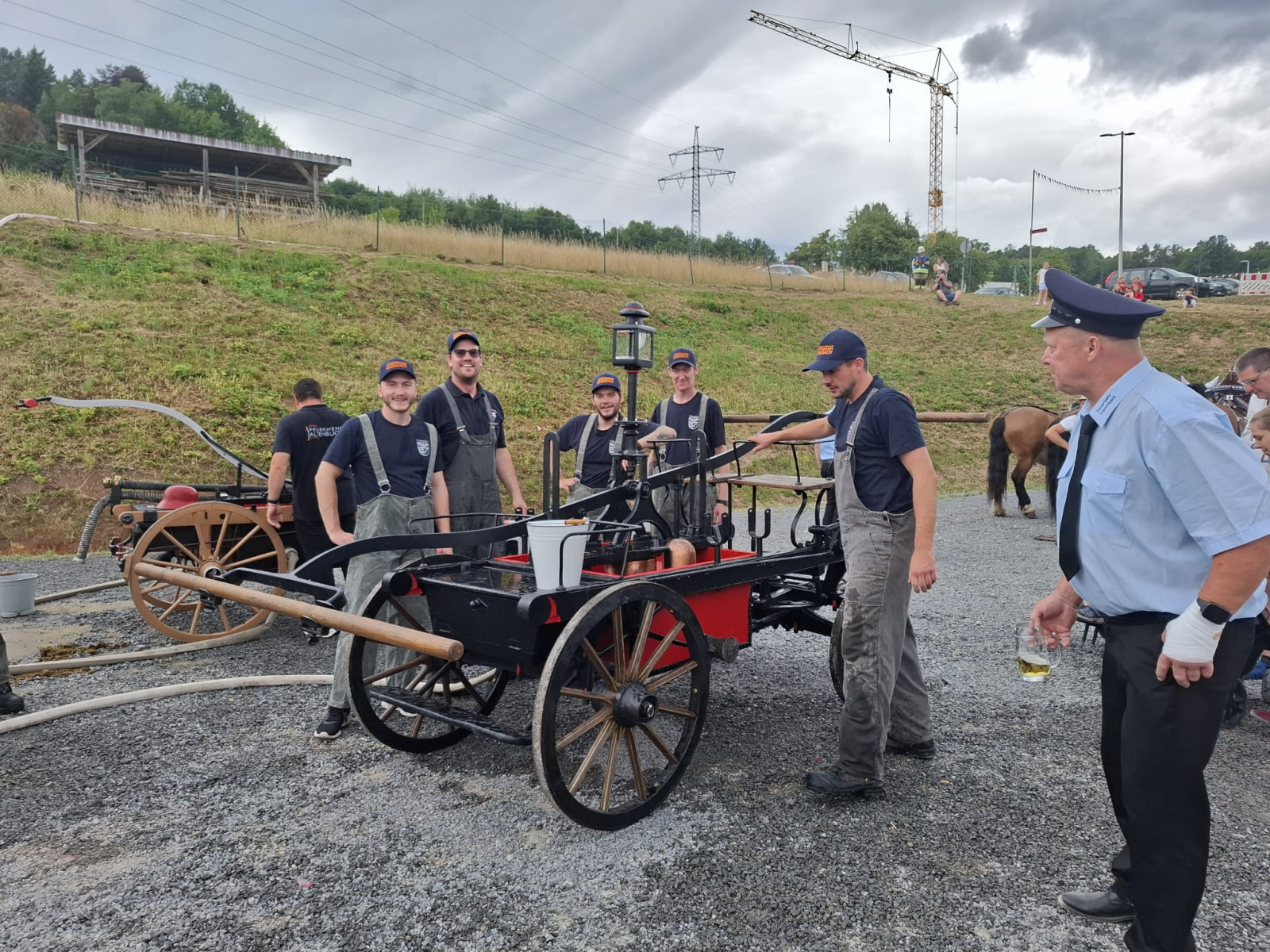 Dort angekommen haben historische Showübungen mit unserer und anderen alten Feuerwehrkutschenspritzen die Menschen in die Zeit von früher entführt.