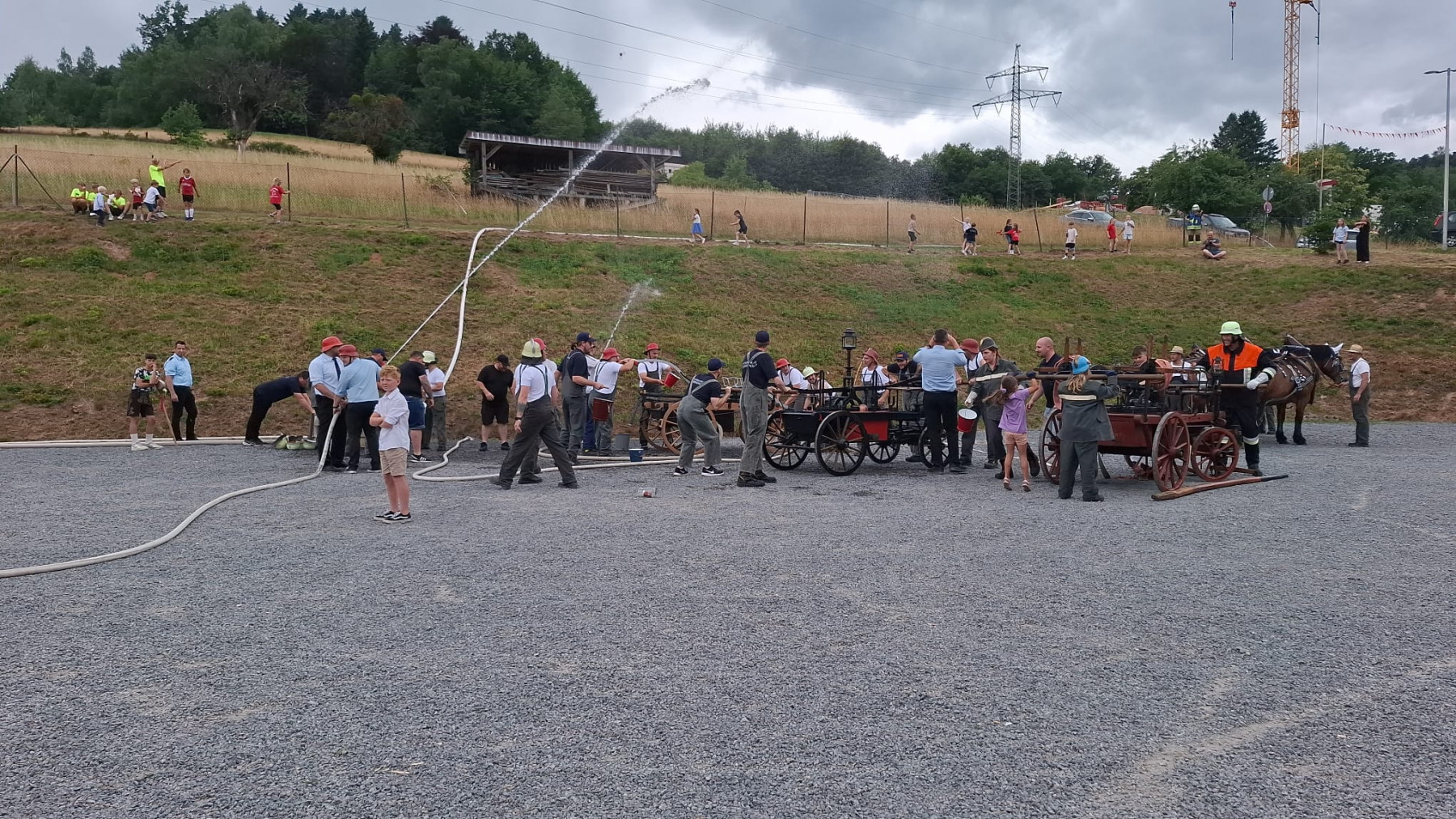 Dort angekommen haben historische Showübungen mit unserer und anderen alten Feuerwehrkutschenspritzen die Menschen in die Zeit von früher entführt.