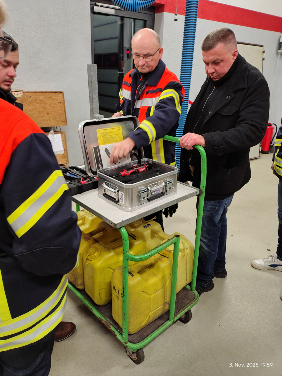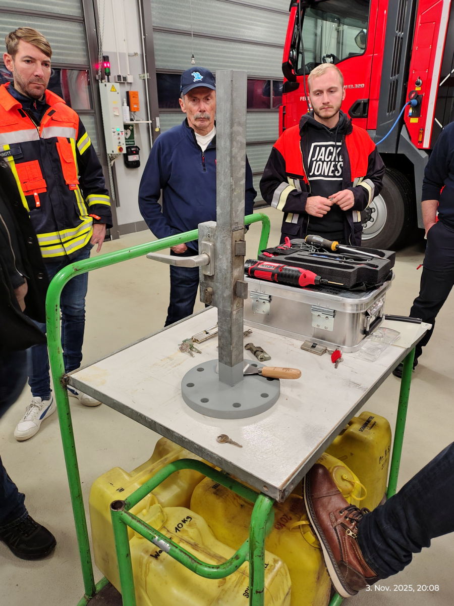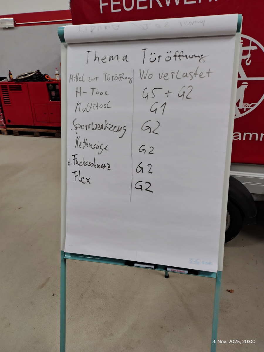 Nach der Begrüßung durch unseren Kommandanten Benjamin erörterten wir, mit welchem Werkzeug wir eine Türe öffnen können und wo diesem im HLF verlasstet sind.