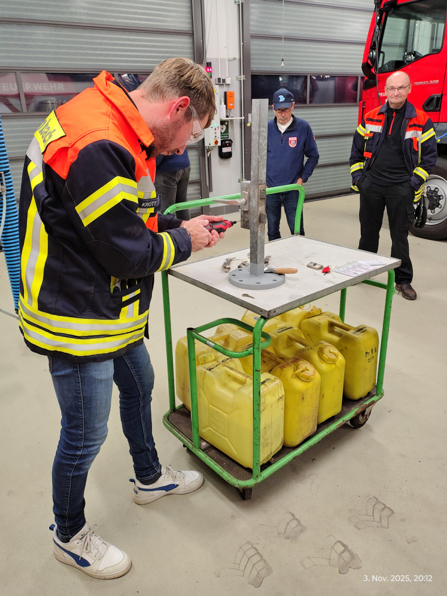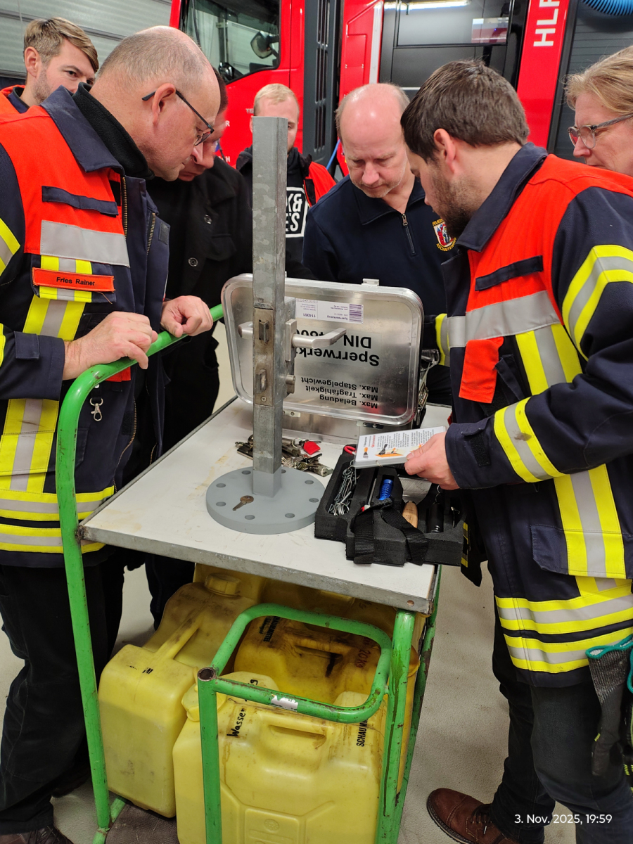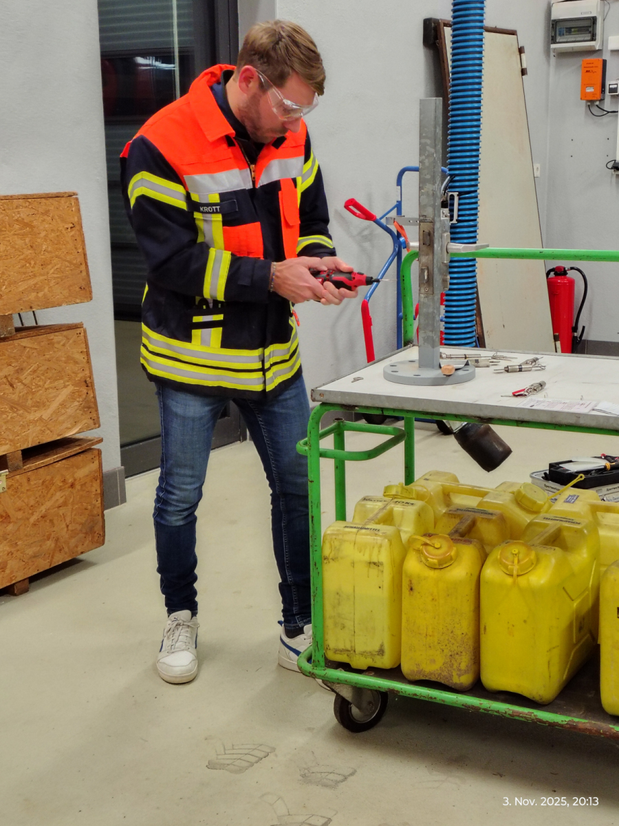 Nach der Begrüßung durch unseren Kommandanten Benjamin erörterten wir, mit welchem Werkzeug wir eine Türe öffnen können und wo diesem im HLF verlasstet sind.