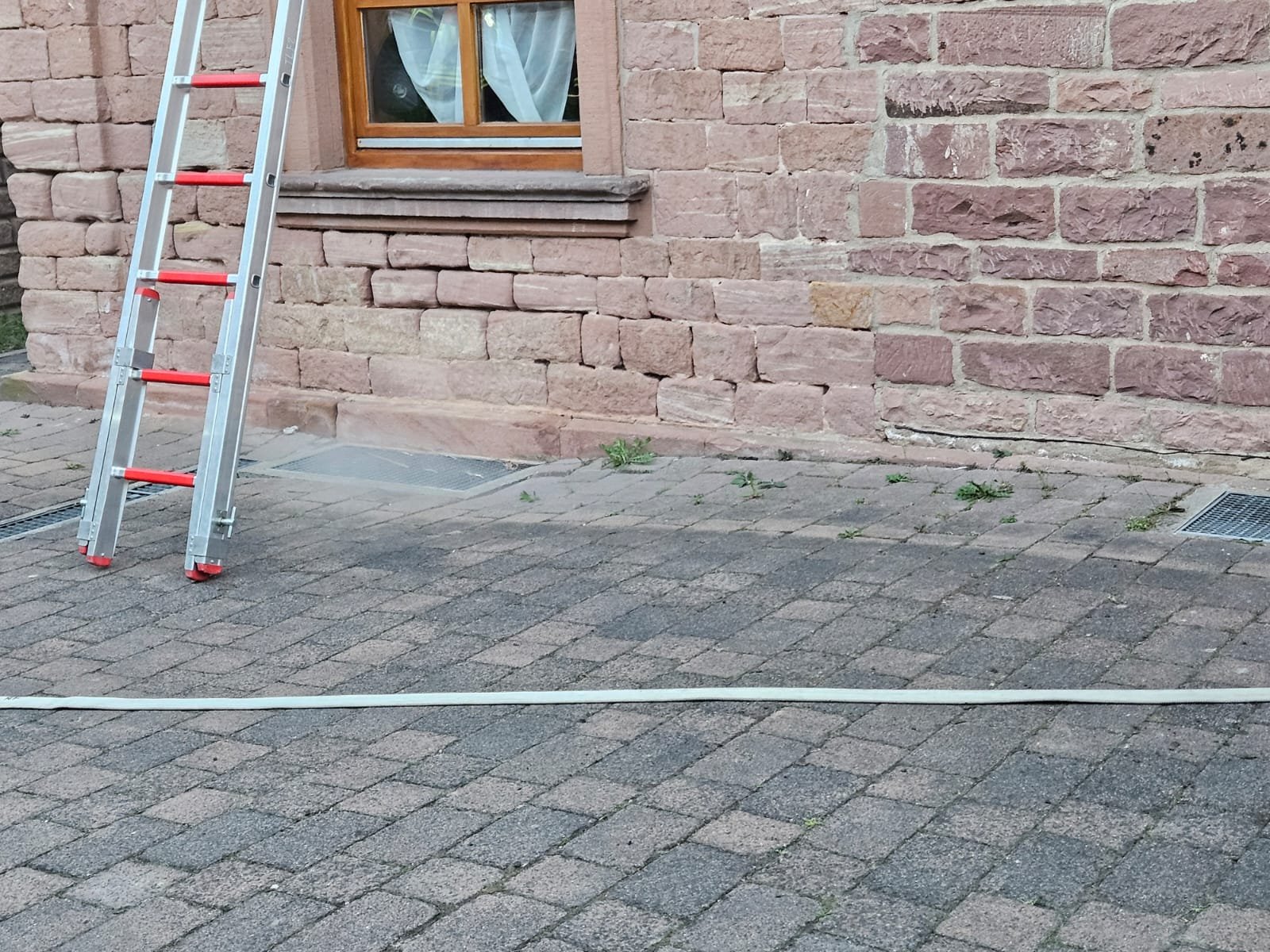Die Anfahrt mit HLF, TLF sowie MZF als Einsatzleitung erfolgte über die darüberliegende Straße „Langenrain“. Der Gruppenführer des HLF übernahm die Erkundung des Gebäudes. Sofort entdeckte er eine Person am offenen Fenster im Obergeschoss. Diese konnte mittels Steckleiter aus dem 1OG gerettet werden . Die weitere Erkundung ergab eine Rauchentwicklung im Kellergeschoss. Rasch wurde eine Wasserversorgung aufgebaut und ein Angriffstrupp unter PA zur Erkundung ins Gebäude geschickt. Schnell konnte der Brand im Heizölraum lokalisiert werden. Da noch unklar war, ob sich noch weitere Personen im Gebäude befinden, erkundete der Angriffstrupp weiter das Gebäude. Im Übungsverlauf konnten 2 Personen im stark verrauchten Übungsobjekt gefunden und nach draußen gebracht werden. Anschließend wurde der Brandherd abgelöscht. @RH