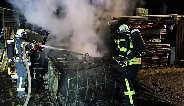 Um 00:24 Uhr wurden wir mit dem Alarmstichwort „B1 im Freien kleinfläche brennt Baum“ in den Amrheinsweg alarmiert. Vor Ort stellte sich jedoch heraus, dass sich die Einsatzstelle in der Krausenbacher Straße befand und dort an einem Gebäude mehrere Stapel Holzbretter sowie Gitterkörbe mit Brennholz in Brand geraten sind. Sofort wurde das Schlagwort auf „B3 im Freien am Gebäude“ erhöht und somit die Feuerwehr Heimbuchenthal so wie der zuständige Kreisbrandinspektor hinzu alarmiert. Auch ein Rettungswagen zur Absicherung der Einsatzkräfte war vor Ort sowie die 1.Bürgermeisterin. Vielen Dank auch der Feuerwehr Heimbuchenthal für die Unterstützung und gute Zusammenarbeit.