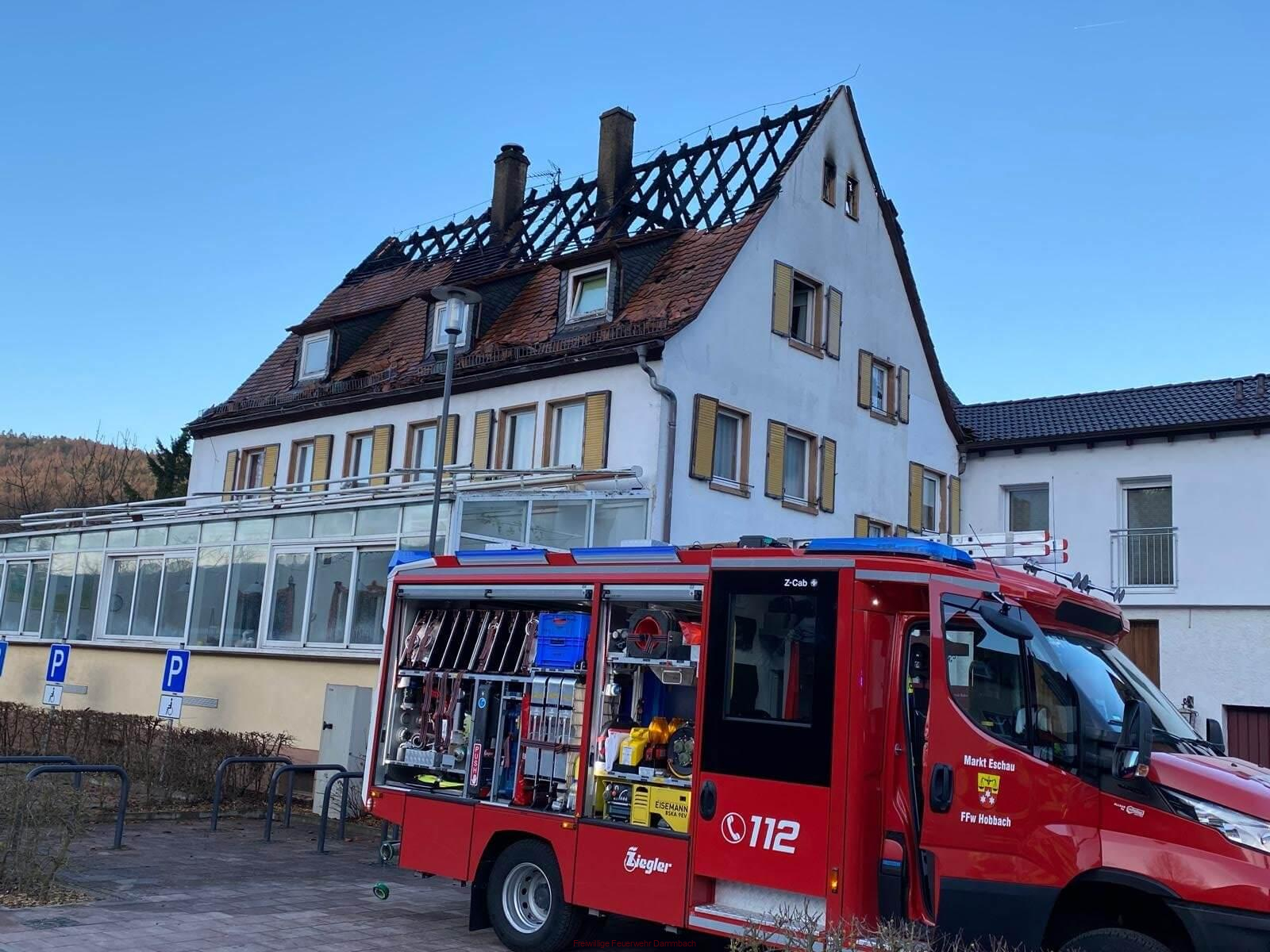 Am Sonntag, den 01.03.2026, ereignete sich in den frühen Morgenstunden gegen 04:15 Uhr ein schwerer Dachstuhlbrand in einem als Gaststätte mit angeschlossener Pension genutzten Gebäude in der Dorfstraße von Eschau/Hobbach. Die Meldung über deutliche Rauchentwicklung und Feuerschein führte zu einer großangelegten Alarmierung der umliegenden Feuerwehren.