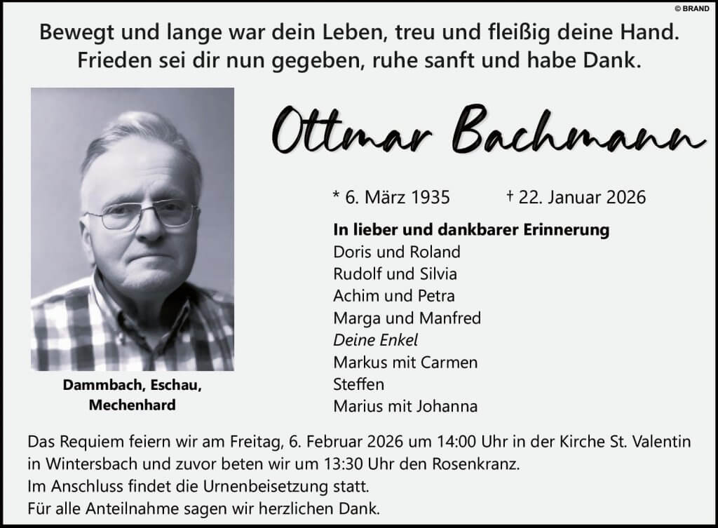 Mit großer Trauer nehmen wir Abschied von unserem geschätzten Feuerwehrkameraden Ottmar Bachmann, der im hohen Alter friedlich von uns gegangen ist.